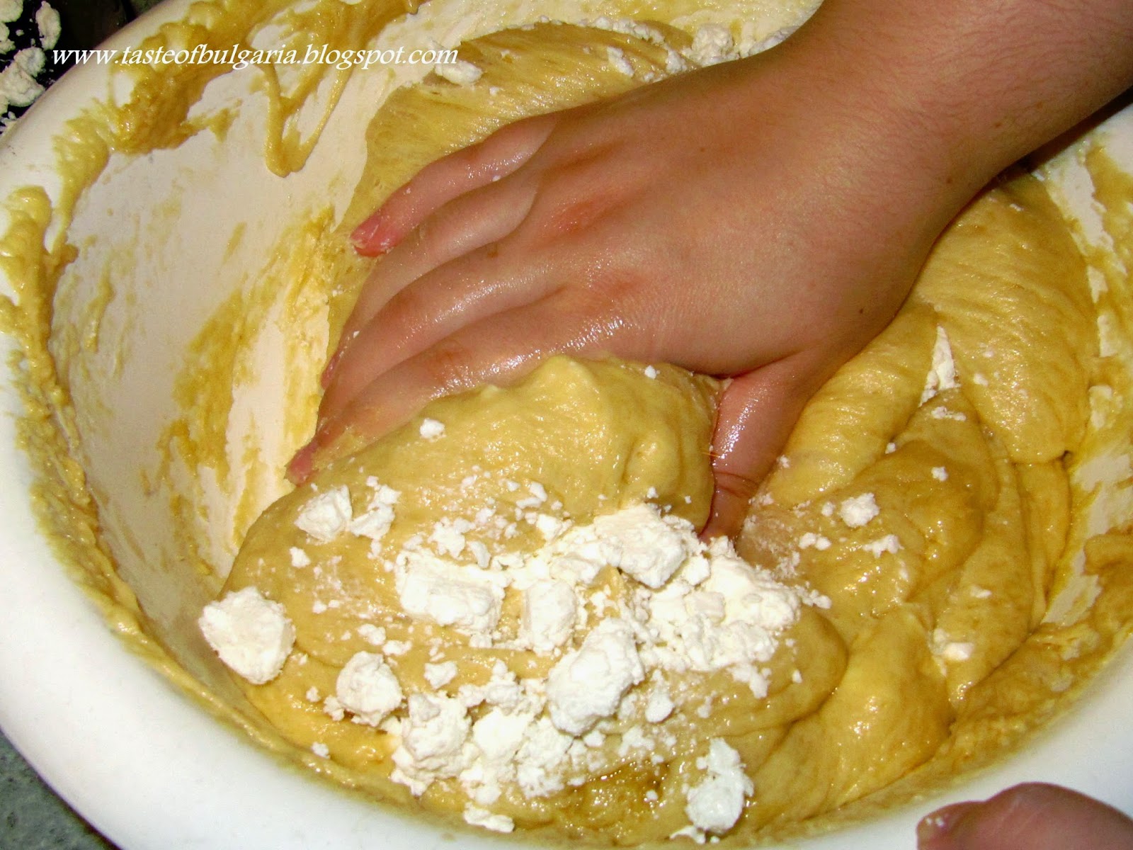 dough, then press down, then carefully knead it until it’s incorporated. Do the same with the rest of the cheese until it’s fully incorporated into the dough.